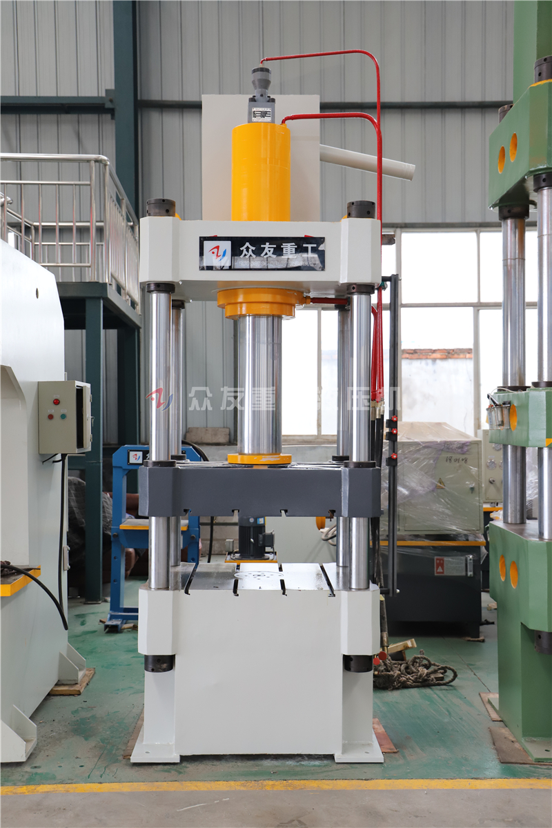 此台液压机是山东滕州众友重工机械设备有限公司自主研发生产设计的,,设备由主机及控制机构两大部分组成,通过管路及电气装置联系起来构成整体。主机部分包括机身、主缸、限程装置等。控制机构包括液压泵站(动力系统)、电器箱、移动操纵台等组成,