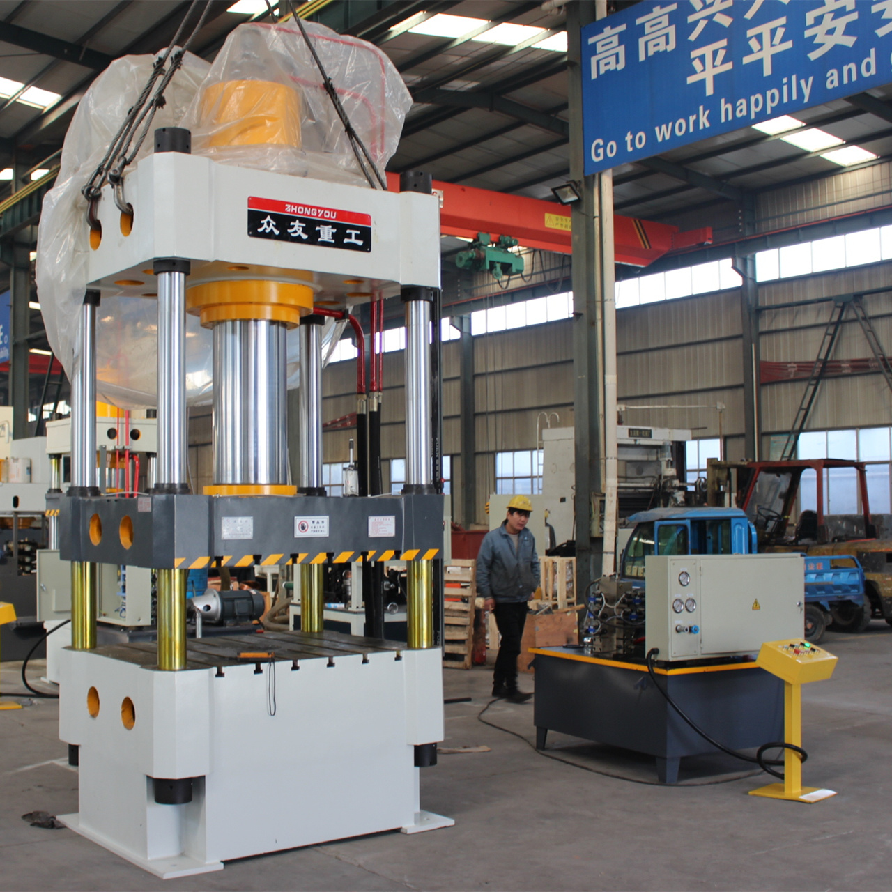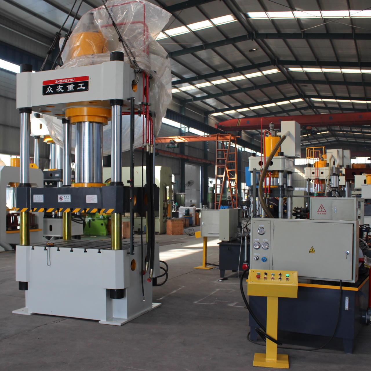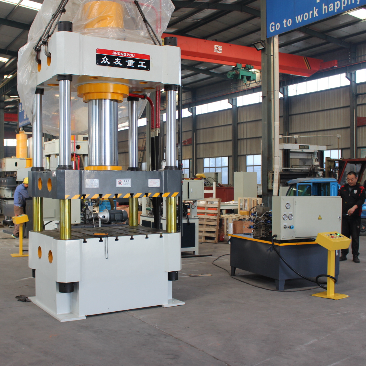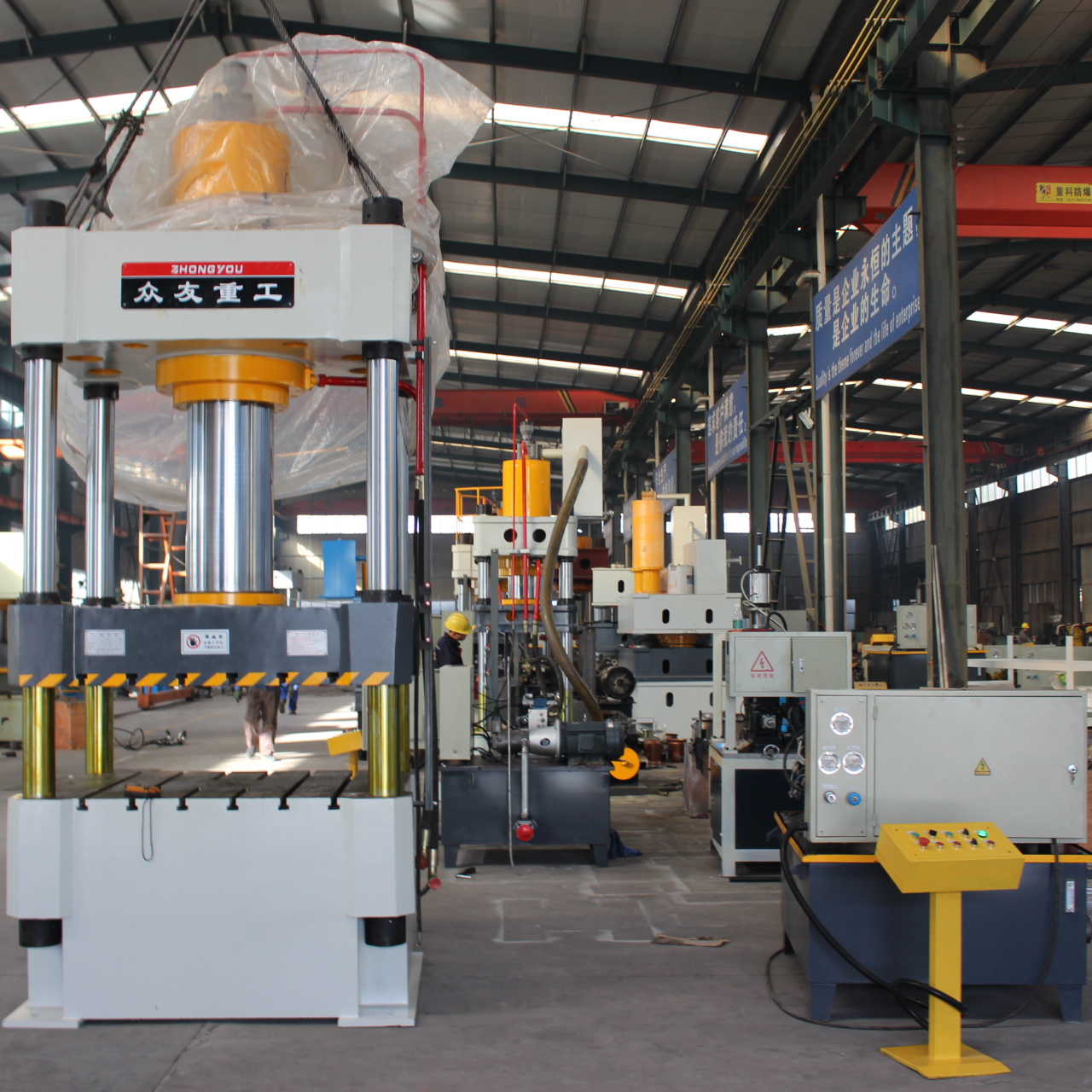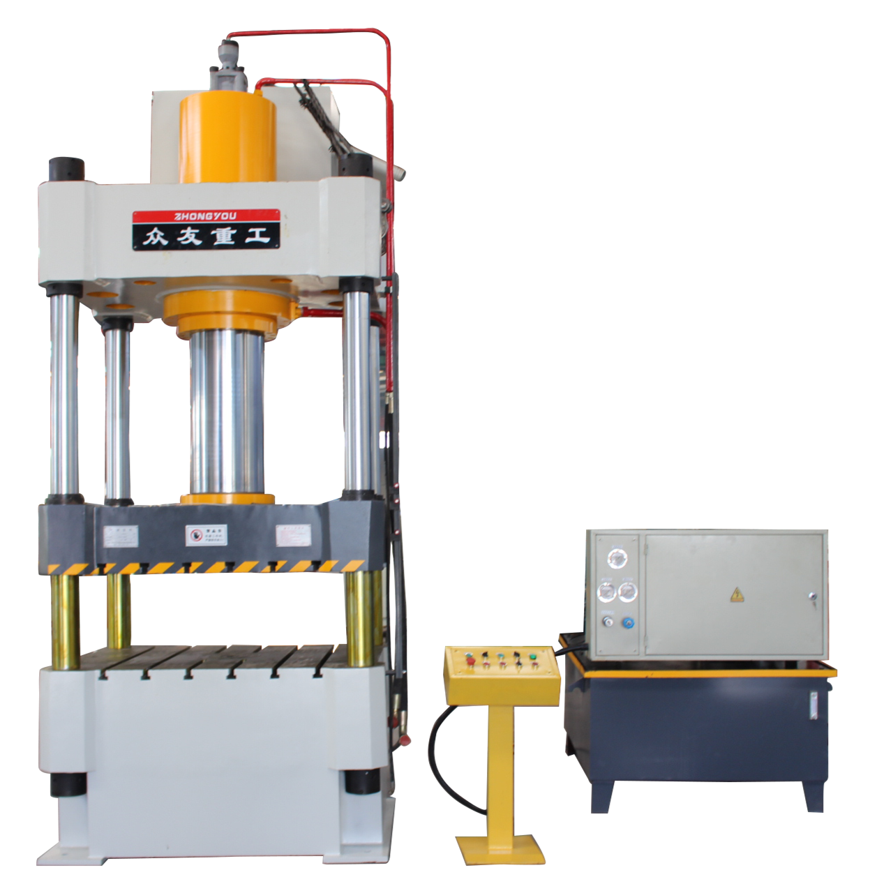 三梁四柱通用液压机机身采用三梁四柱式结构,液压系统采用插装阀集成控制。 独立可靠的电控系统,具有广泛的通用性,适用于各种塑性材料的压制加工和成型,如挤压、弯曲、折边、拉伸等;同时亦可用于各种塑料、粉末制品的压制成型。 可实现定程、定压二种成形工艺,并具有保压延时等性能,应用广泛、经济性好。 如果液压机用于落料,冲裁等工艺,应该加装冲裁缓冲装置,以消除或减轻材料冲断瞬间的冲击和噪音。