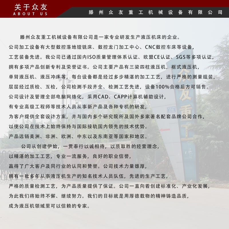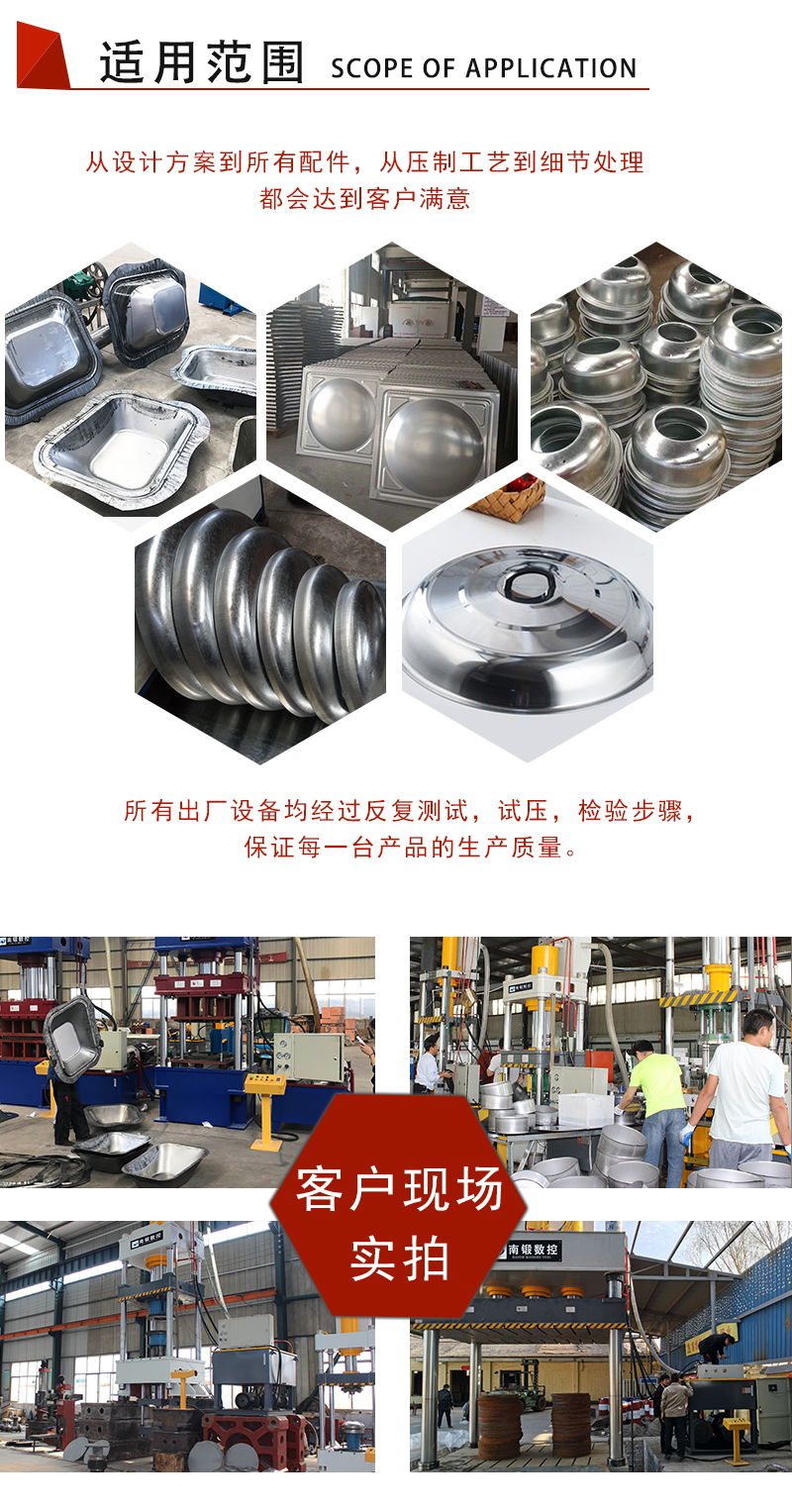 三梁四柱通用液压机机身采用三梁四柱式结构,液压系统采用插装阀集成控制。 独立可靠的电控系统,具有广泛的通用性,适用于各种塑性材料的压制加工和成型,如挤压、弯曲、折边、拉伸等;同时亦可用于各种塑料、粉末制品的压制成型。 可实现定程、定压二种成形工艺,并具有保压延时等性能,应用广泛、经济性好。 如果液压机用于落料,冲裁等工艺,应该加装冲裁缓冲装置,以消除或减轻材料冲断瞬间的冲击和噪音。