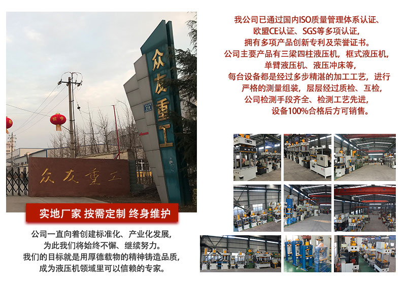 滕州众友重工机械设备有限公司有16年的液压机生产经验。整机检测合格后准予出厂。