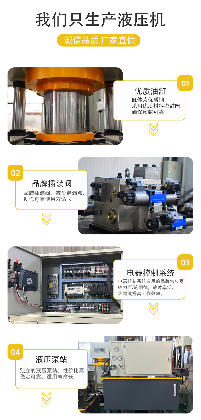 6、采用先进的插装阀,结构紧凑,减少了管路连接,提高了系统的密封性,减少渗漏
