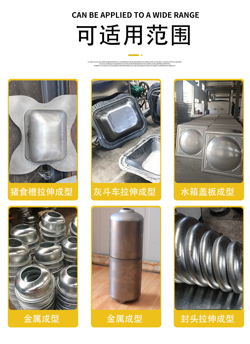 拉伸液压机可用于矫正、压装、打包、压块和压板等。还可用于轴类零件的压制工艺,型材的校准、扣压、压装工艺以及板材零件的弯曲、定型、压印、套型、拉伸、可塑性材料的压制工艺,如冲压、弯曲、翻边薄拉伸等作业,也可以从事校正、压装、塑料制品及粉末制品的压制成型作业。因其应用范围广泛也被称为万能拉伸液压机