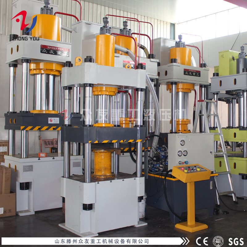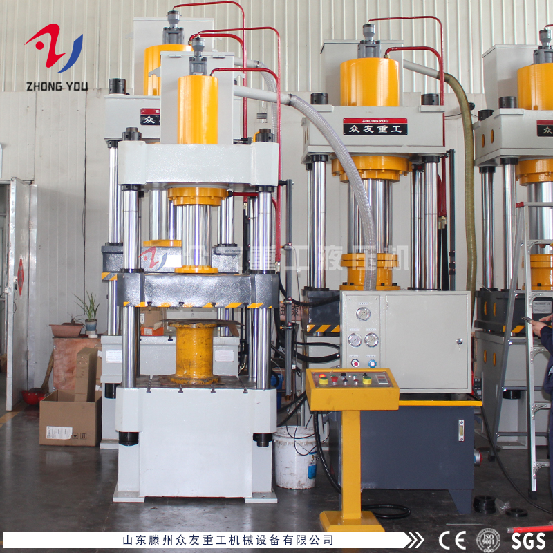 此台液压机是山东滕州众友重工机械设备有限公司自主研发生产设计的,,设备由主机及控制机构两大部分组成,通过管路及电气装置联系起来构成整体。主机部分包括机身、主缸、限程装置等。控制机构包括液压泵站(动力系统)、电器箱、移动操纵台等组成,