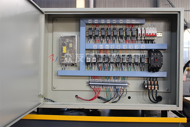 机器设有独立的电气控制箱,集中控制整个机器的运转。设备配有光电保护装置和急停按钮,确保作业时人员和设备的安全