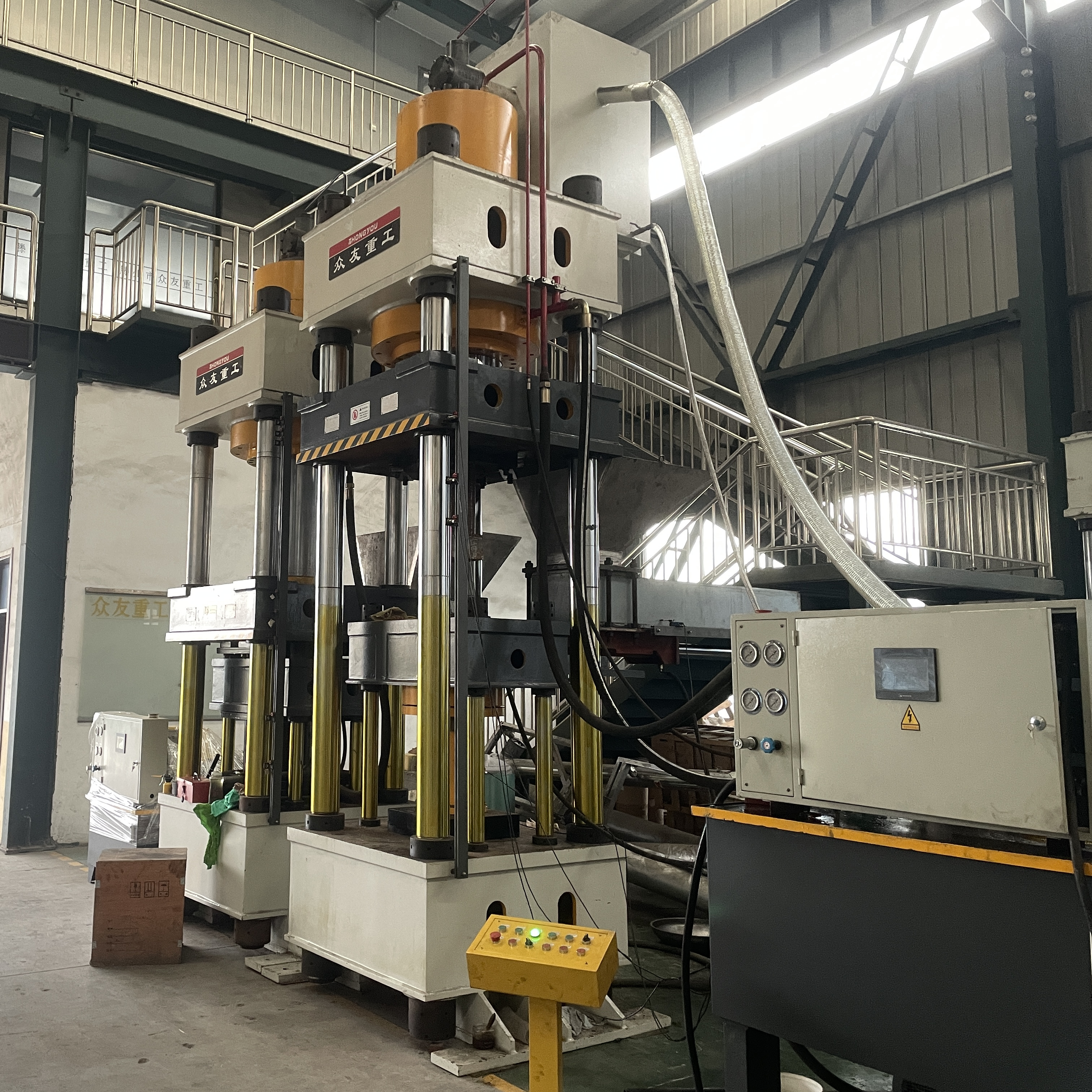 类型:全自动四梁四柱式粉末成型液压机。