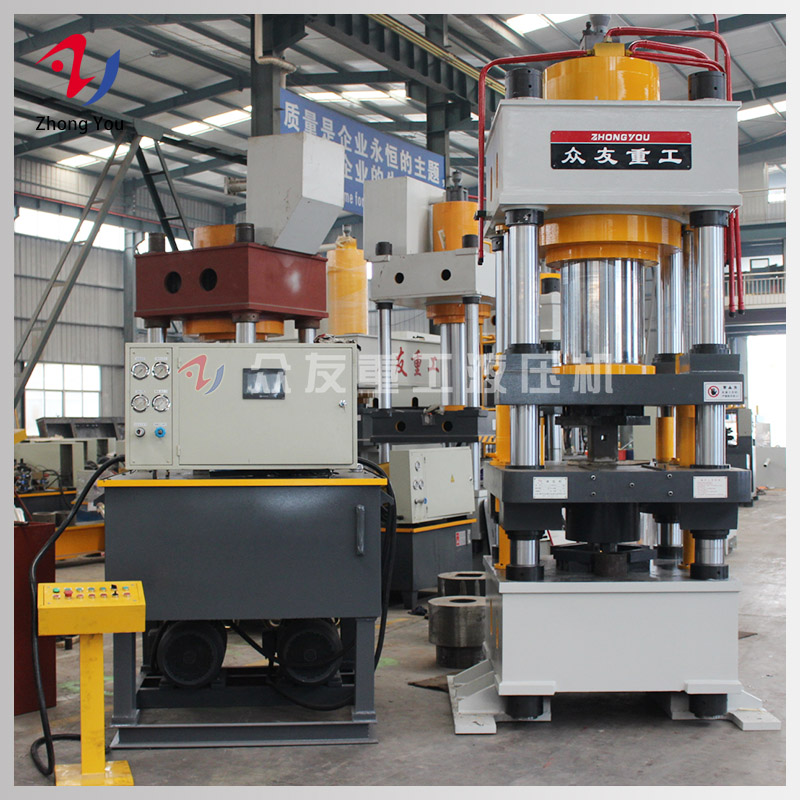 3、检查油箱上安装的油冷却器,如果采用水冷却器,则需要检查进水温度和流量,进水温度是一个非常重要的参数,必须保证进水温度不超过25℃,否则冷却效果会大大降低,水流量应根据冷却器的类型来确定,使用水冷却器三年以上应检查管道是否结垢,结垢会影响冷却效果,如果结垢应进行清除;4、在休息时间或换班时间,四柱液压机必须停止,电机必须关闭;