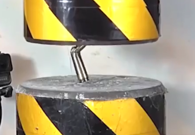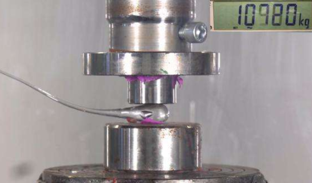 了解过液压机的人都知道,这家伙也是从来都不怕挑战,各种敢于挑战液压机的物品,几乎都难逃被碾压的命运,甚至还有些硬家伙被液压机压到当场爆碎,即便是有着最硬玻璃之称的鲁伯特之泪,也被液压机压到当场爆碎。