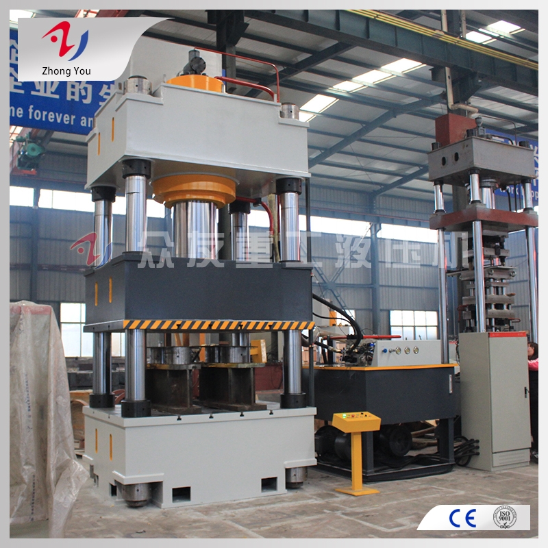 2、削减四柱液压机设备的装机功率,削减作业中的能量丢失。液压体系中尽量削减溢流、节省,合理计划液压体系,比方一台依托溢流阀溢流保压的液压机消耗的动力也许是闭泵保压的液压机的2倍,依托蓄能器前进空载速度的体系比迅速缸体系浪费动力至少两倍以上。